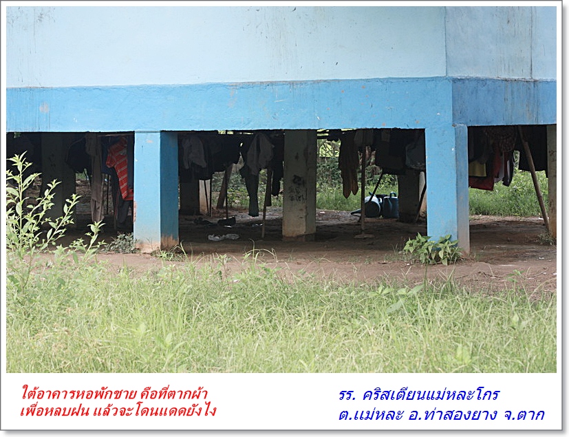 เนื่องจากโรงเรียนคริสเตียนแม่หละโกร อยู่ที่ อ.ท่าสองยาวได้รับความเดือนร้อนขาดน้ำดื่ม เนื่องจากไม่มีระบบน้ำดื่มที่ดี ประกอบกับหน้าน้ำมากทำให้น้ำในลำธารขุ่นแดง ซึ่งคุณเวช (รังสิต) เป็นผู้แจ้งข่าวขอความช่วยเหลือจากทางโรงเรียนให้ทราบ ซึ่งเราได้นำเรื่องนี้มาพิจารณาให้ความช่วยเหลืออย่างเร่งด่วน เพราะมีเด็กนักเรียนจำนวนมาก และจัดเป็นที่พักให้นักเรียนด้วยเนื่องจาก เด็กนักเรียนที่นั้นหลายคนต้องเดินทางมาจากหมู่บ้านที่อยู่ห่างไกล