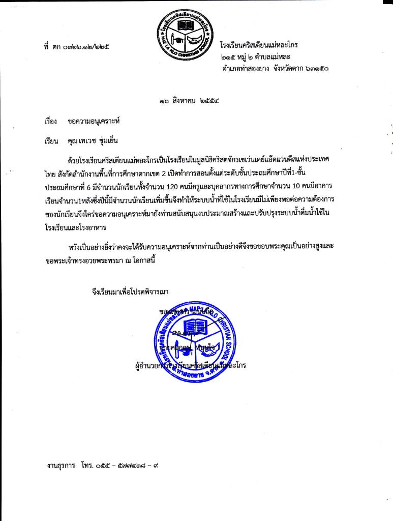 หนังสือขอความอนุเคราะห์จากทางโรงเรียน