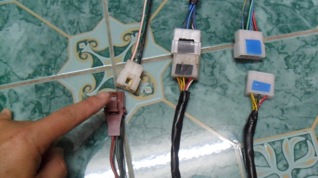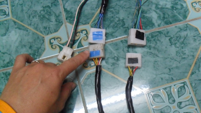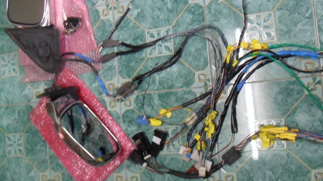 ปลั๊กไฟ แยกออกเป็น 3 ชุด ชุดหนึ่งไปกระจกซ้าย ชุดหนึ่งไปกระจกขวา อีชุด เป็นชุดสายไฟ ไฟหรี่ และกราวน์จากรถ เข้าสวิทช์