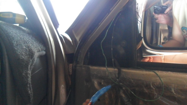 สรุปแล้ว ต้องนำสายไฟ 6 เส้น ผ่านเข้ายวงสายไฟ ประตู เชื่อมต่อเข้ากับ ตัวรถ อันนี่แหล่ะครับ ค่อนข้างยาก ทำคนเดียว ไม่ถอดประตู แง้มยางหุ้ทสายไฟแล้วพยายามสอด และสอดจนได้ ครับทั้ง 2 ประตู