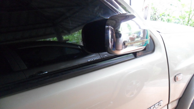 แบบเดิม ของเจ้าคาเมก้า เป็นแบบปรับไฟฟ้า พับมือ ยังสวยวิ้ง ๆ อยู่เลย แต่อยากจะเปลี่ยนแนวบ้างครับ จึงลงมือเปลี่ยนครับ สังเกตว่า มีแถบไฟเลี้ยวและ สติกเกอร์สะท้อนแสงด้วย (ใส่เองนานแล้ว)