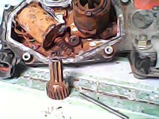 ผมลองแกะของเก่ามาดูและ สภาพตามที่เห็นเลยหนิมเขรอะครับ แต่เฟืองยังใช้ได้อยู่เป็นเหล็กชุบแข็งทนทานครับยิ่งใช้ขบกับเฟืองพลาสติกก็เลยไม่มีอะไรเสียหายครับ ดูผิดรึเปล่าคับมันจะมีจารบีขาวหล่อลื่นอยู่+สนิม เลยดูคล้ายเฟืองเสียครับ