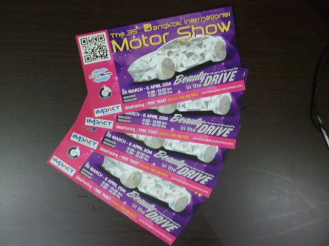 ผมได้รับบัตร Motor Show มาให้แจกจ่ายแก่เพื่อนสมาชิก IZU ได้ไปเที่ยวชมงานดังกล่าว ซึ่งจะมีจัดขึ้นระหว่างวันที่ 26 มีนาคม 2557 - 6 เมษายน 2557 ณ Bangkok International Impact Muang Thong Thani ขอแจกแก่สมาชิก IZU หมายเลยสมาชิกละ 3 ใบ