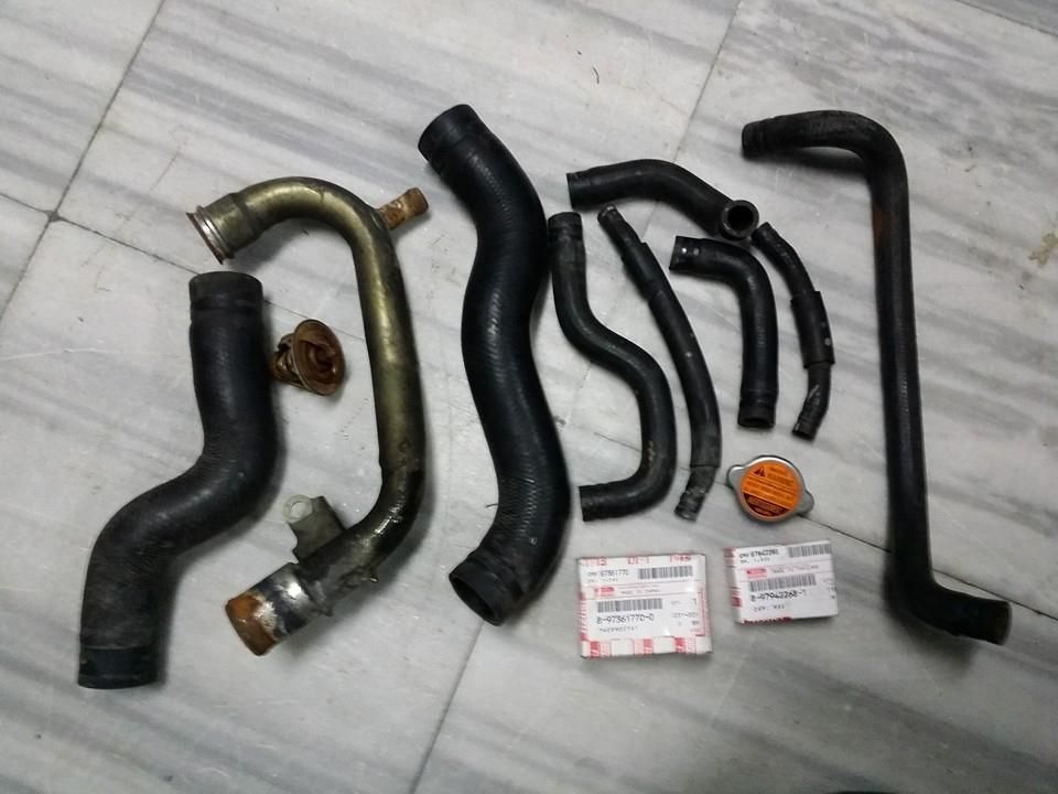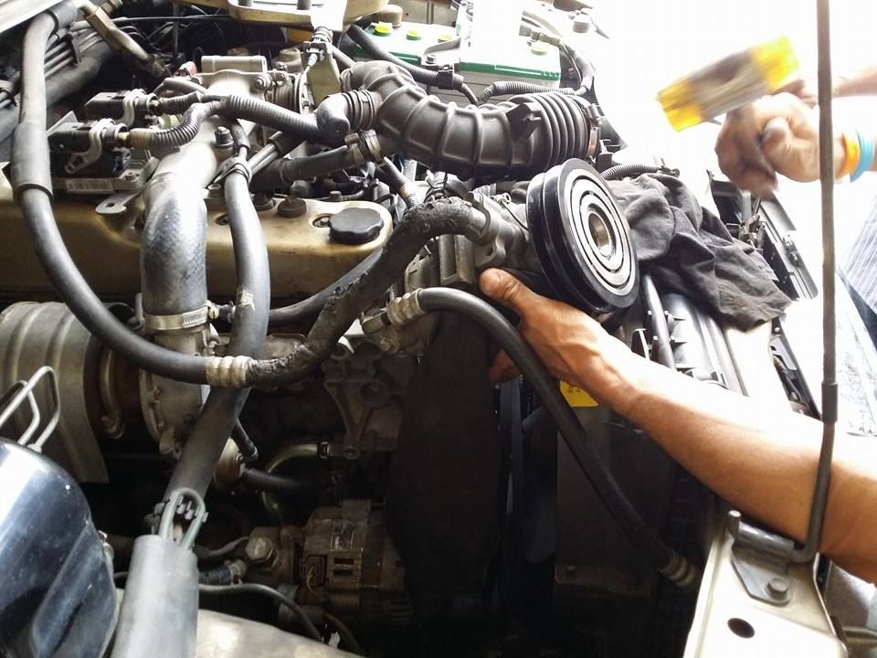 รถคันนี้ไม่ค่อยได้วิ่งจอดเสียส่วนมาก แล้วจอดบนพื้นทรายเสียด้วย ทำให้มองไม่เห็นน้ำรั่ว ขับไป ทำไมความร้อนขึ้นก้มลงมาดูมีน้ำหยด เปิดฝากระโปรงดู เครื่องร้อนจี้ ก็ดับเครื่องรอเครื่องเย็น เปิดฝาเติมน้ำ ขับต่อไปถึงที่หมาย วันรุ่งขึ้นรื้อแผ่นรองใต้ห้องเครื่องออกแล้วกรอกน้ำเข้าไปใหม่ดูว่ารั่วตรงไหน ถึงได้รู้ ว่ารั่วแป๊ปข้างเครื่องนี่เอง ก็จัดการให้ศูนย์เปลี่ยนใหม่ทั้งหมดเลยพร้อมทั้งครัทหน้าคอมแอร์ด้วย เพราะลองจับหน้าคอมดู มันคลอน และมีร่องห่างจากกันมากแล้ว