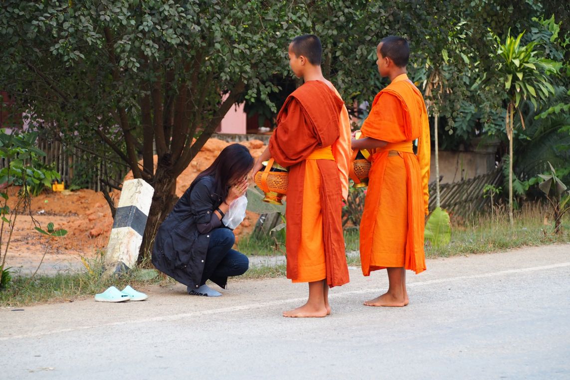 ระหว่างรอ ก่อนล้อหมุน มีพระเดินบิณฑบาตรถผ่านมา สมาชิกบางท่านก็ใส่บาตรเพื่อเป็นศิริมงคลเนื่องในวผันขึ้นปีใหม่