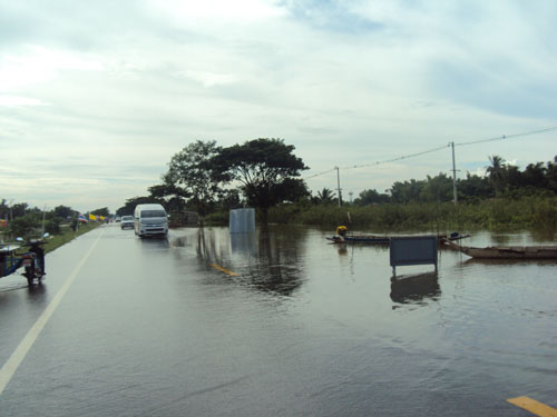ถนนสายสิงห์บุรีไปเขื่อนเจ้าพระยา หน้าที่ทำงานครับ....ใช้เรือวิ่งได้เลย