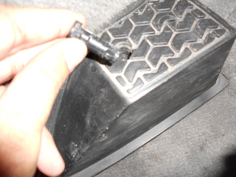 ตอนรื้อพรม ติดปัญหานิดหน่อย ตรงแป้นพักเท้านี่แหละครับ (แสงไม่ค่อยพอ) ไม่รู้ว่ามีสรู พลาสติกยึดอยู่ แงะตั้งนานเกือบแตกเลย เอาไฟฉายมาส่องดู ถึงบางอ้อเลยครับ เล็ก ๆ น้อย ๆ จริง ๆ