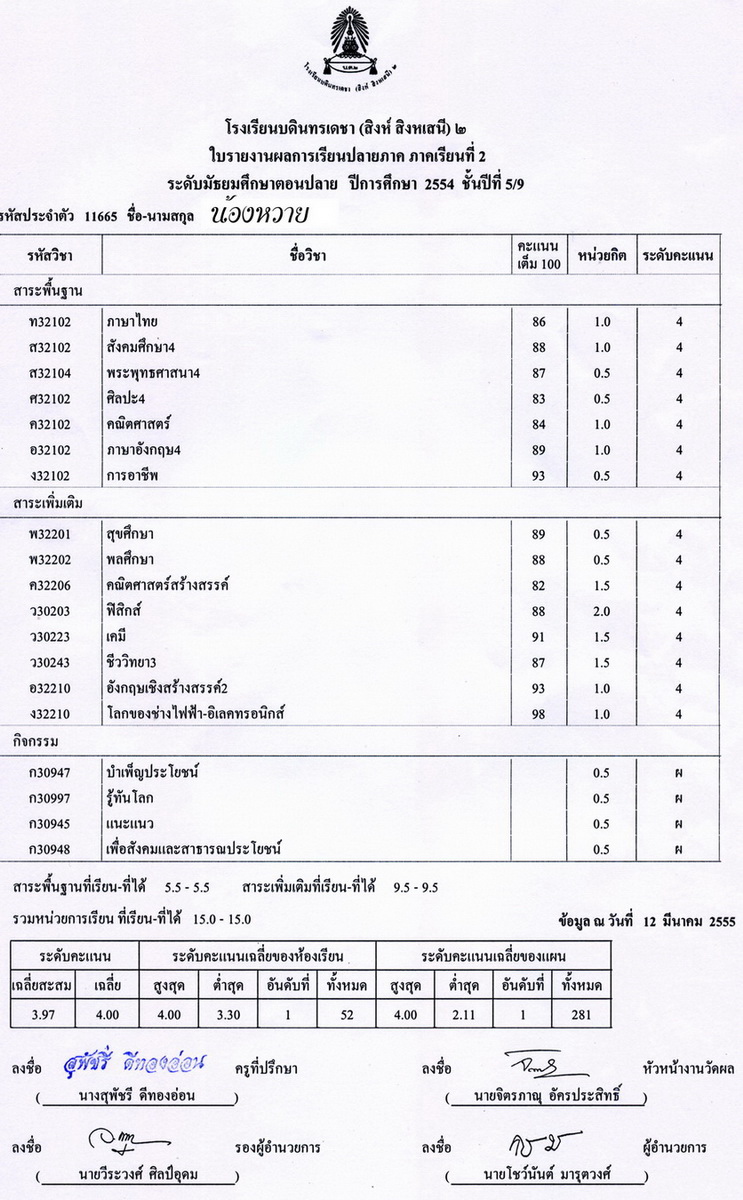 ข่าวดีที่ 2 น้องหวาย(ลูกสาว) ผลสอบก็ออกมาแล้ว ได้ 4 พอดี...เย้..สอบผ่านเอาตัวรอดได้เหมือนกัน..