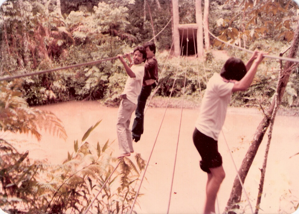 ที่เขาใหญ่ เมื่อ 35 ปีก่อน สะพาน เชือกแต่ไม่มีไม้กระดานปูน่าจะเป็นจุดกางเต้นท์ลำตะคอง