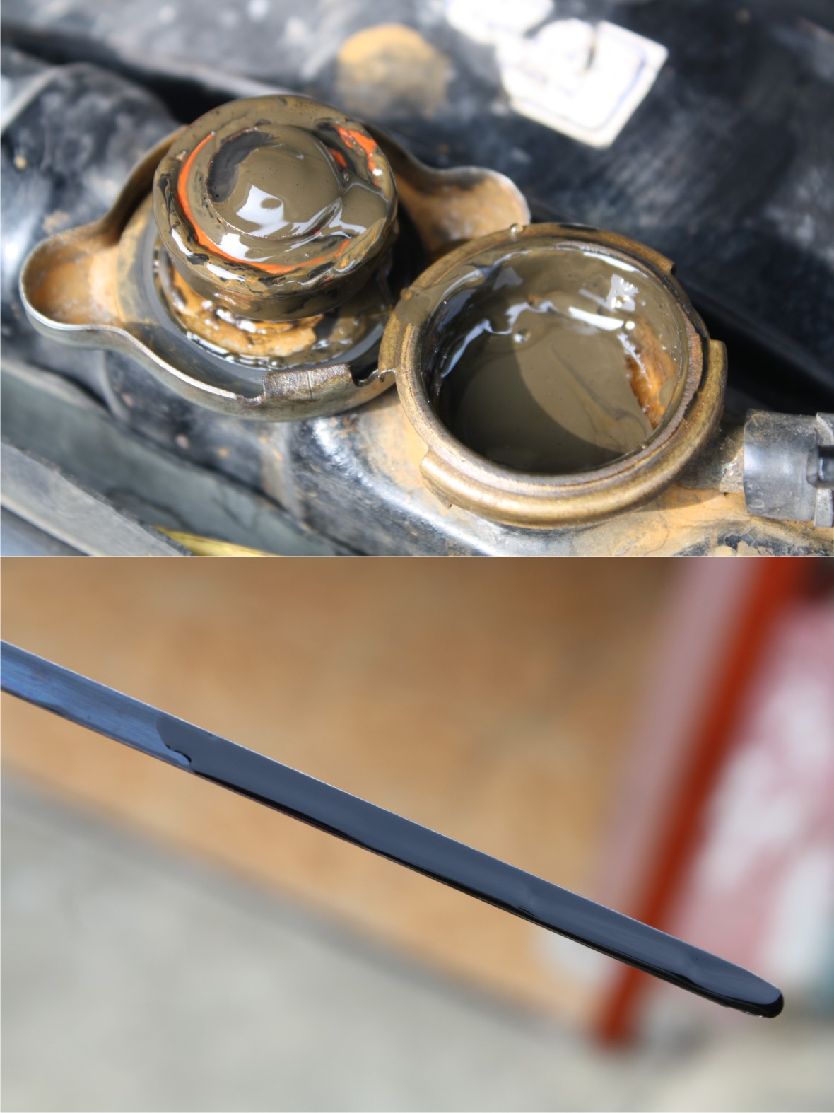 แบบนี้ Oil Cooler รั่วแล้วครับ น้ำกับน้ำมันเครื่องเข้าไปหากันได้