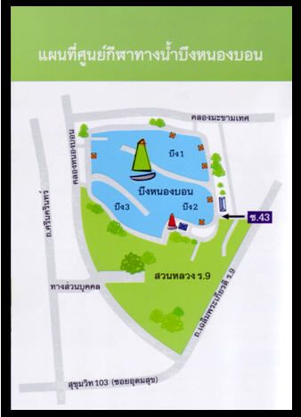 เส้นทาง - อยู่ฝั่งเดียวกันสวนหลวง ร.9 ถัดจากสวนหลวงมันจะมีเฉลิมพระเกียรติ ร.9 ซอย 41ก่อน... แล้วค่อยต่อด้วยเฉลิมพระเกียรติ ร.9 ซอย 43 มีป้ายบอกเล็กๆ พื้นเขียวตัวหนังสือขาวว่า ศูนย์กีฬาทางน้ำบึงหนองบอน ขับเข้าไปสักพักก็ถึงครับ