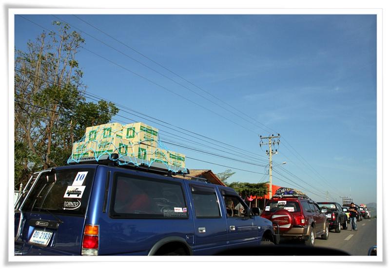 คณะเราจำนวน 17 คัน 41 คน ออกเดินทางจากจุดนัดพบปั๊ม NGV ตรงบายพาสสุพรรณบุรี ตั้งแต่เวลา 06:00น. มุ่งสู่โรงเรียน เพื่อให้ทันเวลา 10:00น.เพื่อจะได้ทำกิจกรรมให้เด็กๆ ตั้งแต่เช้า เราเดินทางเป็นขบวนคาราวานถึงแยกทุ่งมะกอก ซึ่งเป็นจุดที่เราจะต้องแยกขึ้นทางลูกรัง และตามกำหนดการเดิม เราต้องใช้เวลาประมาณ 2 ชม. เป็นอย่างน้อง แต่เนื่องจากเจ้าหน้าที่ได้ทำการปรับทางให้เรียบขึ้นทำให้เราใช้เวลาเพียง 1.5 ชม. ทำให้เราเดินทางถึงที่หมายตามกำหนดเวลา