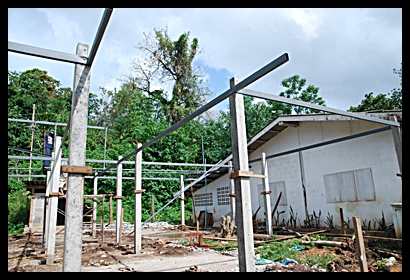 ณ วันนี้ โครงหลังคาได้เสร็จแล้ว กำลังจะดำเนินการมุงกระเบื้อง ทางครูแจ้งว่าในราวต้นเดือนหน้านี้หรืออย่างช้า