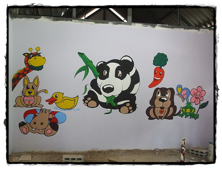 รูปลายการ์ตูนที่ขีดเขียน ละเลงสี โดยกลุ่มแจ่มและเพื่อน