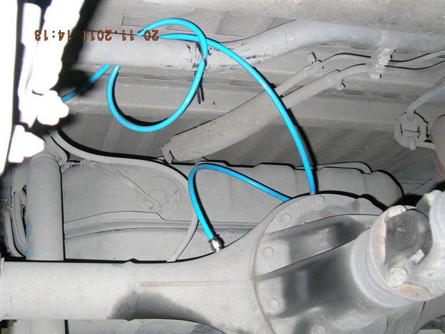 ก็จัดการทำเอง รถสูงพอลอดเข้าไป เอาปากตายเอบร์14 ขันออก แล้วใส่ตัวฟิตติ้ง ขันแน่นตึงมือ แล้วกดสาย PUเข้าไป เผื่อความยาวตอนยืดตัวแบบกะเอา ทำแบบง่ายฯ พอดีลืมซื้อ เคเบิ้ลไท เลยรัดแค่เส้นเดียว