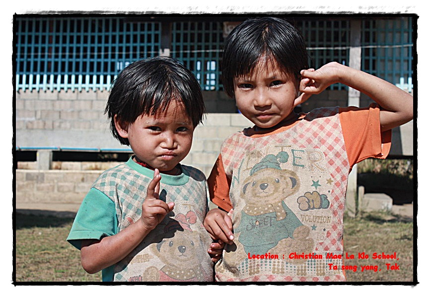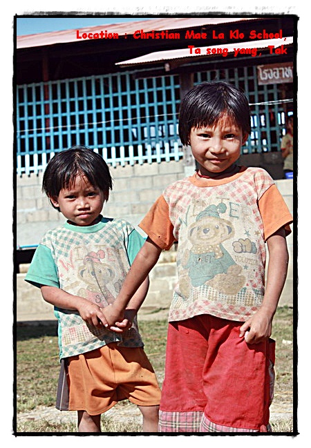 หนูน้อยสองคนนี้ เป็นผู้อพยพ ที่มีบ้านอยู่หลัง รร. ติดรั่ว รร.เลย