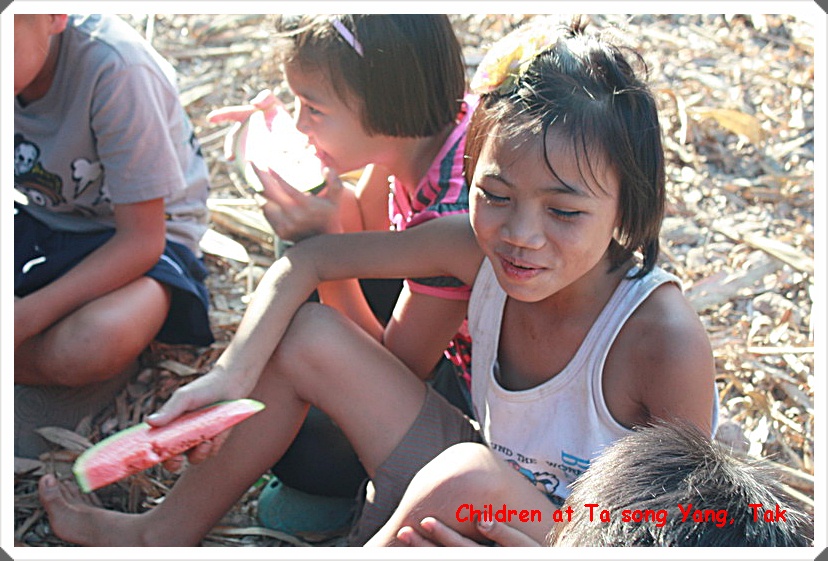 ไปร้องเพลง ไปเล่นเกม และเอาเเตงโม ไปให้เด็ก ๆ ชาวพม่า-กระเหรี่ยง ที่อพยพเข้ามาอยู่ในเเผ่นดินไทย น่าสงสาร