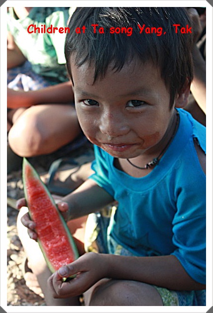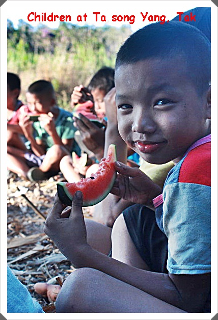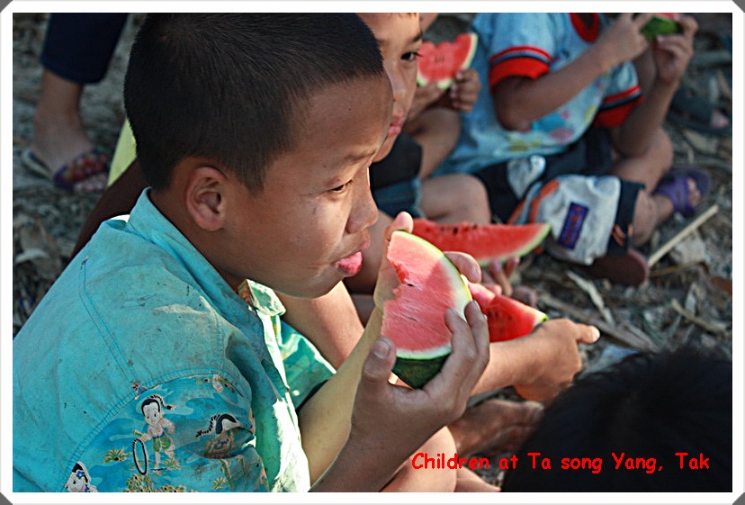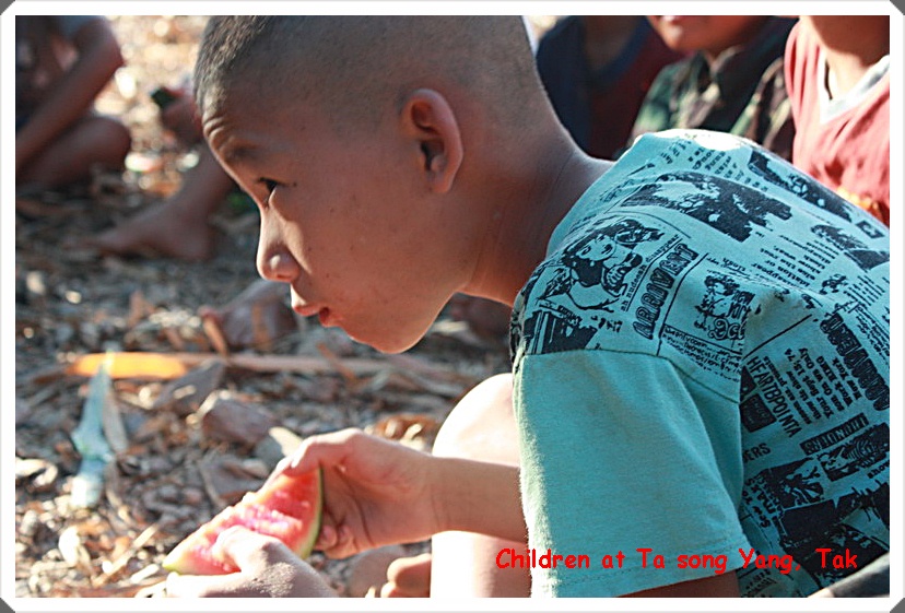 ไปร้องเพลง ไปเล่นเกม และเอาเเตงโม ไปให้เด็ก ๆ ชาวพม่า-กระเหรี่ยง ที่อพยพเข้ามาอยู่ในเเผ่นดินไทย น่าสงสาร