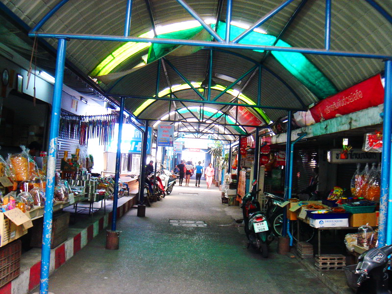 ทางเดินที่ท่าเรือท่าฉลอมทำเป็นอุโมง มีของขายบ้างประปราย