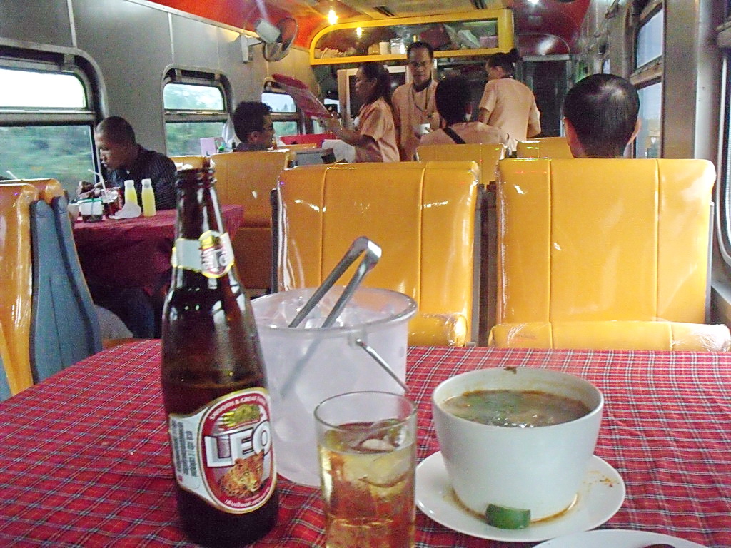 เครื่องดื่มอาหาร บนรถไฟแพงมากทุกอย่างเริ่มต้นที่ร้อย เช่นลีโอ 1 ขวด ราคา 110 บาท