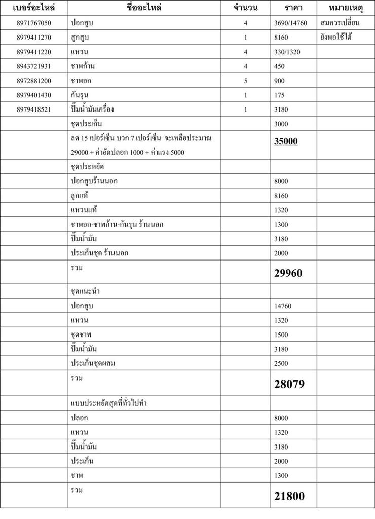 ผม 4JA โอเวอร์ฮอนไป ใช้อะไหล่ชุดใหญ่เปลี่ยนเกือบหมดแต่ไม่ใช่แท้ศูนย์ รวมค่าแรงหมดเกือบสามหมื่น