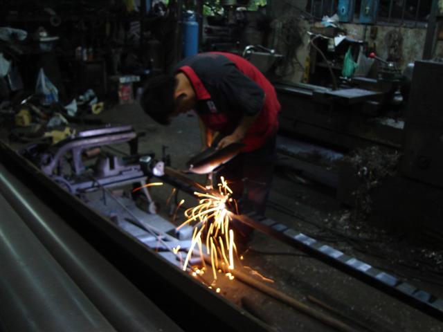 ข้างซ้ายอีกด้าน .......ที่เห็นเป็นเหล็กกลมระหว่างเต้าแหนบหลังเป็นjigครับ.กันการบิดต้วของเหล็กเวลาเจอความร้อนครับ
