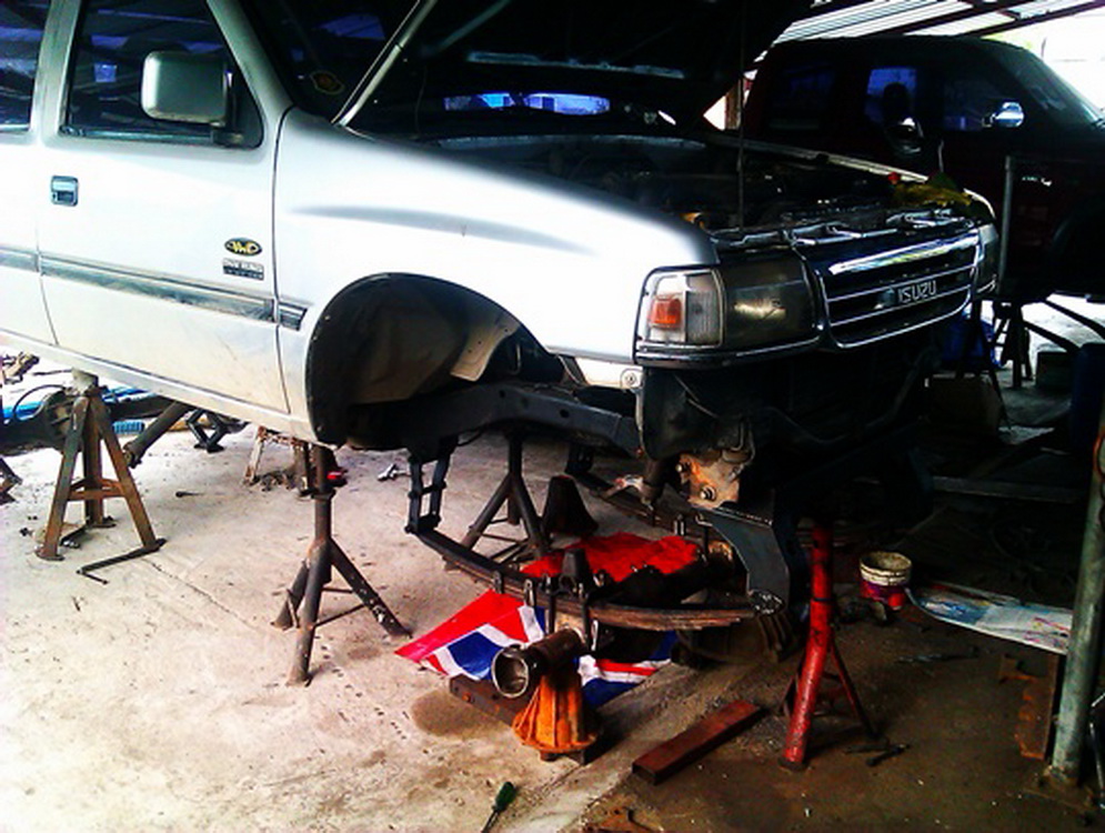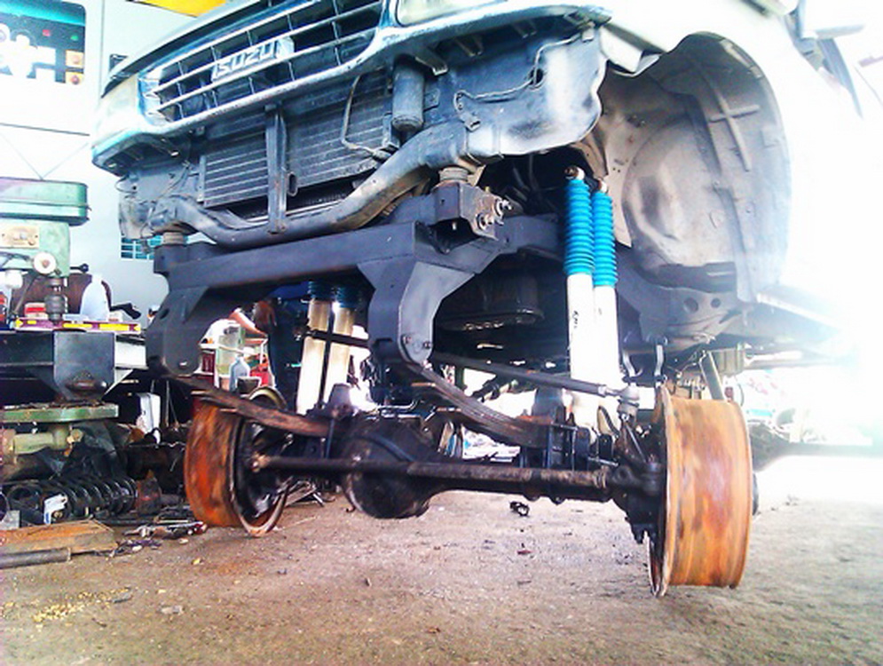 กรีดคอผมกรีดโรงกลึงแถวบ้านครับ แล้วให้ช่างตู๋ประกอบและวางใหม่ แต่แว่วๆว่าช่างตู๋ก็กรีดได้ แต่ต้องเลาะพวกอานแหนบ,หูโช้คและกันเลี้ยวใหม่นะครับ เพราะองศาเสื้อเพลามันเปลี่ยนไป ของผมกรีด เพิ่มไปประมาณ 15 mm. ลดปัญหาเรื่องเพลาชัน กากบาทแตกไปเลยครับ ตอนนี้เปลี่ยนกระปุกเป็นแบบกวาดหน้าอยู่ เสร็จแล้วจะเอามาให้ชมครับ
