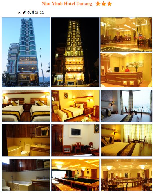 - เดินทางสู่ภูเขาบานาโดย กระเช้าไฟฟ้า ที่มีความยาวที่สุดของประเทศเวียดนาม บานามีอากาศเย็นตลอดทั้งปีสามารถชมวิวดานังที่มีความงดงาม จากภูเขาบานาแห่งนี้ ( ค่าใช้จ่าย ส่วนตัว 600 บาท/ท่าน )