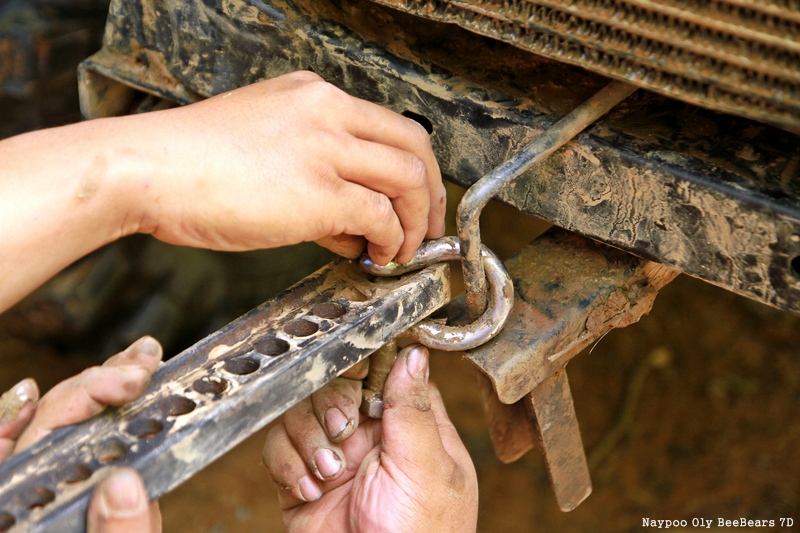 ดัดแปลงอุปกรณ์ทุกอย่างทีมีมาใช้ประโชนย์ในการลากรถ