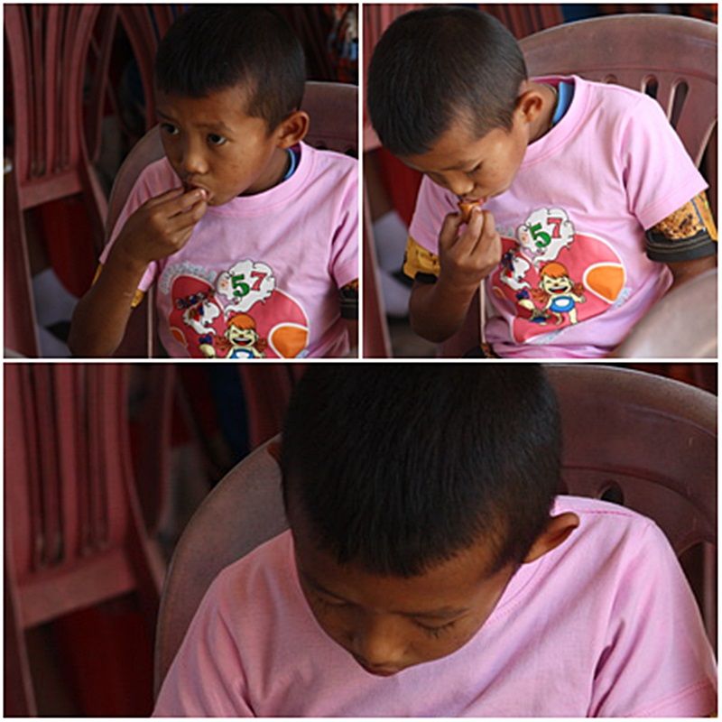 เงินจำนวนนี้เราได้นำไปจัดหาชุดนักเรียนมอบให้เด็กทุกคนจำนวน 41 คน หารองเท้า 1 คู่ที่มีขนาดพอดีให้แก่เด็กนักเรียนหญิงคนหนึ่งที่ไม่มีรองเท้านักเรียนใส่มาโรงเรียน เบาะรองนอนสำหรับเด็กอนุบาล 10 ชุด และจัดซื้ออาหารที่เด็กชาวเมืองคุ้นเคย แต่เด็กชาวชนบทไม่เคยลิ้มรสเพียงแต่ได้เห็นและรู้จักทางทีวี