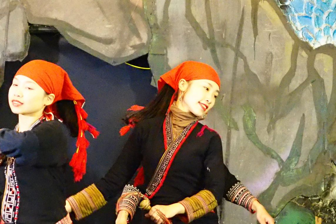 คณะเราจอดรถไว้ที่โรงแรมซึ่งลักษณะคล้ายรีสอร์ท แล้วนั่งรถ mini bus เที่ยวหมู่บ้าน Cat Cat เป็นการเดินชมวิถีชีวิตของชนเผ่าม้ง มีการแสดงและจำหน่ายสินค้า Hand made
