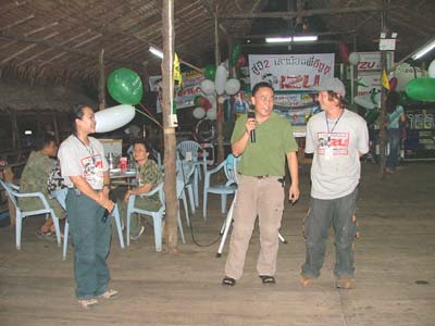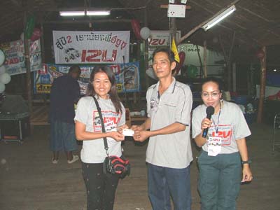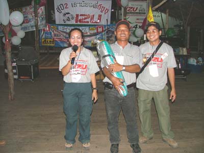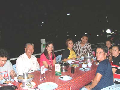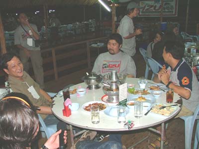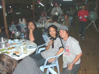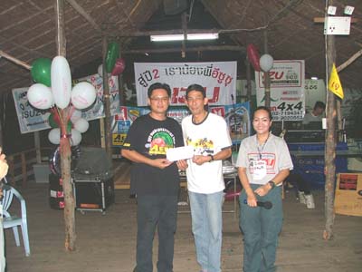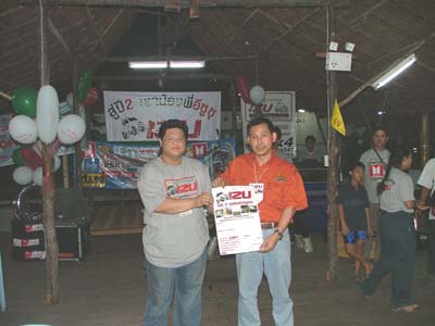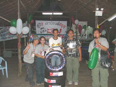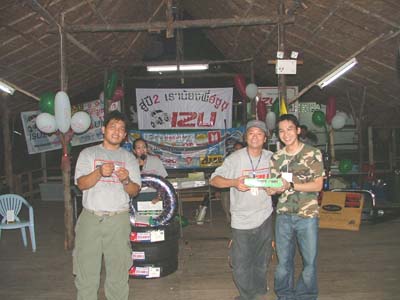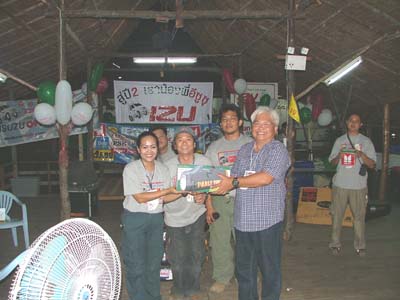 แล้วช่วงเย็นเราก็ไปต่อกันในส่วนของเรือนแพซึ่งจัดเตรียมไว้สำหรับงานเลี้ยงรับรองเพื่อนๆ และผู้สนับสนุนการจัดงาน ชาวอีซูทุกท่านก็พร้อมใจกันขนข้าวของไปตกแต่งสถานที่ต่อในเรือนแพ นำทีมโดยเฒ่าแหลม IZU 134 เจ้าหนุ่ยIZU 073 และเพื่อนๆ IZU MEA TEAM อีกหลายๆท่านที่ค่อนข้างจะจำชื่อสับสนแล้วล่ะ ตรงนี้เราต้องการให้สมาชิก และผู้สนับสนุนการจัดงานทำความรู้จักเพื่อนใหม่เพิ่มขึ้นอีก และร่วมสนุกกับกิจกรรมที่เป็นกันเองของเราพร้อมลิ้มรสอาหารอร่อยๆ ในเรือนแพที่รายล้อมด้วยธรรมชาติ เพื่อนๆอีกกลุ่มที่ตามมาร่วมงานภาคค่ำเดินทางมาลงทะเบียนอย่างไม่ขาดสายแถมรับรางวัลใหญ่น้อยกันไปถ้วนหน้าค่ะ และยังได้ร่วมฉลองวันเกิดให้กับเพื่อนๆ IZU ที่เกิดในเดือนตุลาคมที่มร่วมงานด้วยค่ะ ขออวยพรให้มิตรภาพจากใจในวันนี้จงยั่งยืนคู่ชมรมตลอดไปนะคะ มิตรภาพนั้นหยิบยื่นให้กันได้ไม่ต้องไปซื้อหามาครอบครองค่ะ สวัสดีค่ะ พบกันใหม่กับกิจกรรมดีๆที่ทีมงานอีซูจะสรรหามาฝากค่ะ
