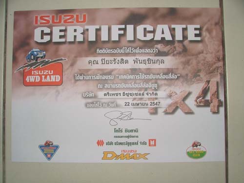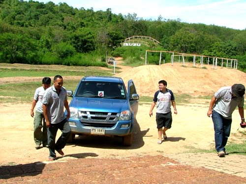 จบหลักสูตรกันถ้วนหน้าทั้งรุ่นใหญ่รุ่นกลางรุ่นเล็กค่ะ สนุกสนานสานสัมพันธไมตรีชาวอีซูซุได้อย่างดีอีกงาน เพราะงานนี้เพื่อนๆสมาชิกมากันร้อยกว่าชีวิต จำกันแทบไม่หมดค่ะ เราไม่ปล่อยให้ท่านใดต้องเหงาก็เลยหาเกมส์ให้เดินยืดเส้นยืดสายทำความรู้จักกันหมู่ชมรมคนรักอีซูซุด้วยกันซักเล็กน้อยก่อนจะเข้าสู่ห้องเรียนอย่างเป็นทางการค่ะ ได้รู้จักเพื่อนใหม่ๆหลากหลายวัย และได้สาระความรู้การใช้รถ 4 WD อย่างถูกวิธี แบบมีครูฝึกนั่งประกบไปตลอดเส้นทาง และยังมีเพื่อนๆนั่งลุ้นใจหายใจคว่ำไปสร้างความสนิทสนมกันกลางสนามอีกด้วยค่ะ