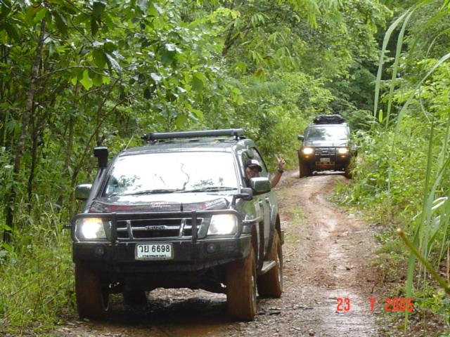 ชาวอีซูออกเดินทางกันตั้งแต่เช้าตรู่วันศุกร์ที่ 22 กรกฎาคม 2548 พอรวมตัวกันที่จุดนัดพบเมืองกาญจน์ และตรวจสอบความเรียบร้อยของสัมภาระ และอุปกรณ์สื่อสารที่จำเป็น เราก็เริ่มมุ่งหน้าสู่แหล่งท่องเที่ยวจุดแรกคือบ่อน้ำพุร้อนหินดาด สายฝนกระหน่ำจนไม่สามารถลงแช่น้ำพุร้อนได้ค่ะ ณ จุดนี้เราได้พบกับเฮียสุรัตน์ IZU 311 ที่ยอมทิ้งก๊วนกอล์ฟมาดักชักชวนให้กลุ่มเราไปพักที่บ้านสวนห้วยอู่ร่องค่ะ ( โอกาสหน้า ไม่พลาดแน่ค่ะ )