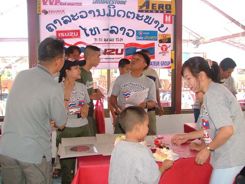 8. วันออกเดินทางแบบขบวนคาราวานมิตรภาพไทย-ลาว เช้าวันที่ 22 ตุลาคม 2548 ( 07.00-21.00 น ).ขอความร่วมมือในการช่วยติดสติ๊กเกอร์ผู้สนับสนุนการจัดกิจกรรม และสวมเสื้อคาราวานมิตรภาพที่แจกให้สำหรับผู้ที่ชำระค่าทัวร์เต็มราคา ส่วนเด็ก ถ้าต้องการซื้อเพิ่มได้ในราคาตัวละ 100 บาท เสื้อมีจำกัด ไซด์ XXL, XL, Free Size และ S ( สำหรับเด็ก และสตรีที่ชอบเสื้อตัวเล็ก ) สติ๊กเกอร์จะต้องติดไว้จนกว่าจะหมดกิจกรรม และนำรถข้ามกลับมาฝั่งไทยเรียบร้อย
