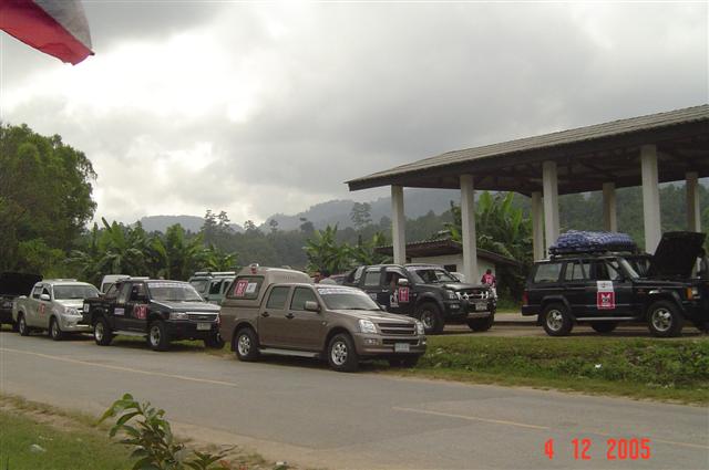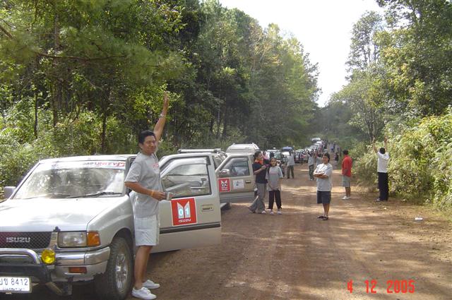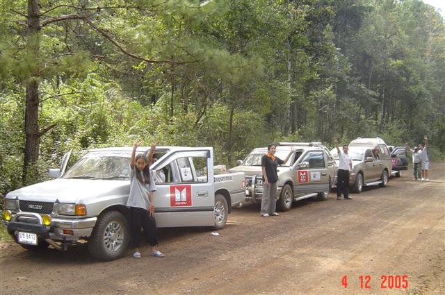 ชาว IZU MEA รวมตัวกันที่จุดนัดพบปั้มคาลเท็กซ์ วังน้อย และตรวจสอบความเรียบร้อยของสัมภาระ และอุปกรณ์สื่อสารที่จำเป็น พร้อมทั้งติดสติ้คเกอร์ เราก็เริ่มมุ่งหน้าสู่เมืองเชียงใหม่ โดยใช้เส้นทางสายเอเซีย จุดแรกที่เราไปถึงเพื่อล้างหน้า ล้างตา หลังจากขับรถกันมาทั้งคืนก็คือปั้มน้ำมัน แถวแม่ริม จ.เชียงใหม่ โดยนัดพบกับพี่ชายท่านสายหมอก (พี่วิรัตน์) ซึ่งทำงานเกี่ยวกับโครงการหลวงในภาคเหนือ