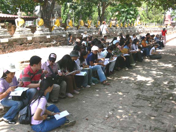 ตลอดการอบรมก็มีเรื่องเล่าเมาท์สนุกๆมากมายแทบทุกที่ทุกทริปที่เราไปศึกษาอบรมภาคสนาม กับบรรยากาศย้อนวัยใสสู่วัยเรียนในรั้วมหาลัยแห่งนี้ ไม่แปลกใจเลยที่คนเรียนจบปริญญาตรี-โทหลายใบ ต้องมาเพิ่มเติมความรู้ตรงนี้ เพราะเรายังไม่รู้จักรายละเอียดแหล่งท่องเที่ยวบ้านเมืองเราดีเลยค่ะ ส่วนใหญ่เราไปก็แค่ผ่านมาผ่านไปแล้วถ่ายรูปเล่นกันเท่านั้น ในความงดงามของศิลปะที่บรรพบุรุษสร้างสรรค์ไว้นั้น มีอะไรน่าค้นหาอีกตั้งมากมาย ยืนยันมรดกไทยงดงามกว่าที่ใดๆมากเลยค่ะ เหมือนไปเริ่มเรียนรู้ ประถมประวัติศาสตร์เลยล่ะค่ะ ได้ความรู้มากมายดีแต่จดจำไม่หมดง่ะ