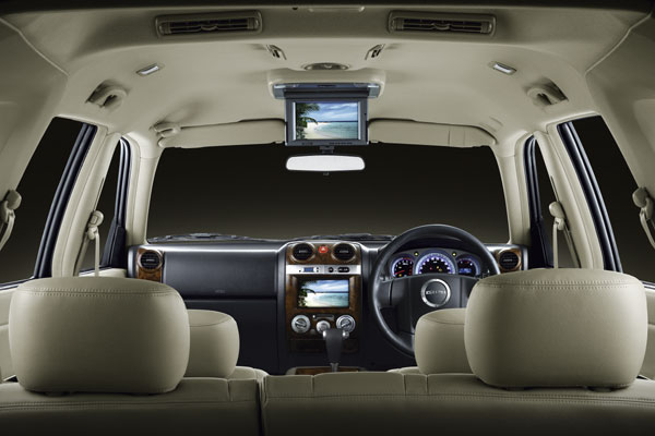 ขณะที่เบาะนั่งมีให้เลือกทั้งกึ่งหนังแท้หรือกำมะหยี่โทนสีเบจ แถวแรกปรับเอนได้ถึง 180 องศา แถวสอง ปรับแยกอิสระแบบ 60:40 ส่วนแถวสามใช้งานแบบอเนกประสงค์ อุปกรณ์อำนวยความสะดวกใส่มาเต็มที่อาทิ กล่องเก็บของอเนกประสงค์เหนือศรีษะพร้อมไฟส่องแผนที่ขนาดใหญ่ ไฟส่องสว่างในห้องโดยสารมีมากถึง 5 จุด ที่วางแก้วน้ำมีครบทุกที่นั่ง (10 จุด) ที่วางแขนเบาะแถวสามดีไซน์เป็นที่วางหนังสือและขวดเครื่องดี่ม ช่องชาร์จไฟอเนกประสงค์ 2 จุดทั้งด้านหน้าและหลัง กุญแจรีโมทดีไซน์ใหม่ พร้อมระบบ Immobilizer ป้องกันการสตาร์ทเครื่องยนต์ด้วยกุญแจปลอม และช่องแอร์ครบทั้ง 3 ตอน
