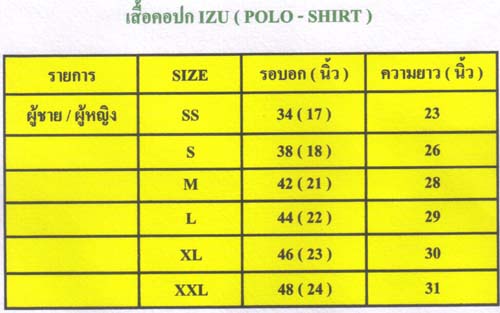 1. เสื้อยืดโปโลประจำชมรมรุ่นใหม่มาแล้วจ้า !!!เป็นเสื้อยืดโปโล เนื้อผ้าลาคอส คอตตอน จูติ หนา 265 อย่างดี พื้นสีขาว และ สีเทาท้อปดราย ปกทอสลับสี ปักโลโก้ชมรม IZU ที่อกขวา และปลายแขนทั้ง 2 ข้าง และสาบคอเสื้อด้านหลัง แบบมีกระเป๋า เสื้อมีไซด์ SS-S-M-L-XL ราคา ตัวละ 270+50 บาท ไซด์ XXL ราคา ตัวละ 300+50 บาท ( ราคารวมค่าจัดส่ง )
