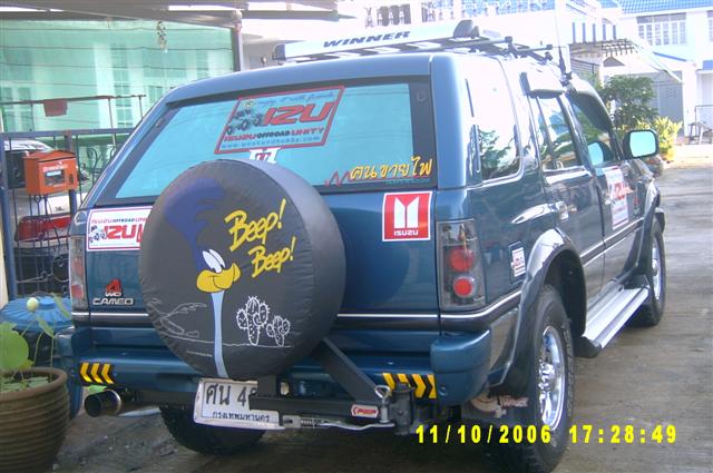 คำตอบที่ 124 ลุงสวัสดี ยินดีครับ วิ่งอยู่แถวไหนครับ ล้อสวยนะ ลึกได้ใจครับ """""ก่อนซื้อแทบจะไม่ค่อยได้เห็ย cameo บนถนนเลย แต่หลังจากที่ซื้อมาใช้แล้ว นับวันจะเห็น cameo บนถนนเยอะมากครับ วิ่งสวนทางกันทุกวัน แปลกนะครับไม่ร้ขุดมาจากไหนกัน"""""" น้องที่ที่ทำงานผม ..ยังถามเลยว่า "พี่ เอารถไปต่อแวนกระบะท้ายมาเท่าไรสวยดีครับ" ผมเลยอึ่งกับคำถามน้องเขาไม่ค่อยได้เห็น cameo วิ่งบนถนน ....55555 นึกว่าเป็นรถกระบะ isuzu TFR ทั่วๆ ไปเอามาตัดต่อ ท้ายครับ ผมซื้อมือสองมาเหมือนกันครับ ใช้มาเกือบ 6ปีแล้ว ตอนนี้ก็ปาเข้าไป จะสี่แสนโลแล้วครับ ไม่เคยงอแง วิ่งไม่อายเก๋ง ไม่อายรุ่นใหม่ๆ ของโลก ทนโท้นทน แต่เสียงดังเป็นเอกลักษณ์ ไปหน่อย ประหยัดน้ำมัน ดีครับ อะหลั่ยมีขายทั่วๆ หาซื้อได้ทุกที่! ถ้าไม่มีอะไรเปลี่ยนแปลง อย่างไรก็ วันที่ 12 มิ.ย.เวลา บ่ายๆ 2-4 ที่ลานจอดรถเมืองทอง ขอเชิญด้วยนะครับ พอดีพี่ๆ เขา มี meeting ใหญ่และจะลงหนังสือ SUV ด้วยครับ เตรียมรถให้สวยให้เท่ห์ก็แล้วกัน