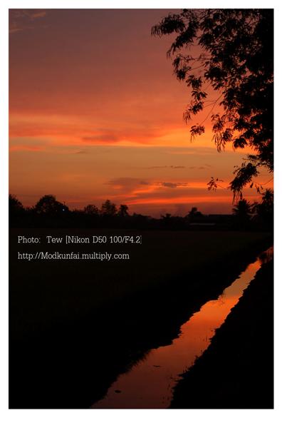คำตอบที่ 11 วันนี้ตอนเย็นไม่ได้รถติดอยู่บนถนนเส้นไหน เลยได้มีโอกาสจับกล้องออกมาถ่ายเล่นก่อนลงสนามจริงพรุ่งนี้ที่ตลาดคลองสวน 100 ปี เป็นบรรยากาษทุ่งนาที่ถนนคุ้มเกล้า ที่อีกไม่กี่วันคงเก็บเกี่ยวได้