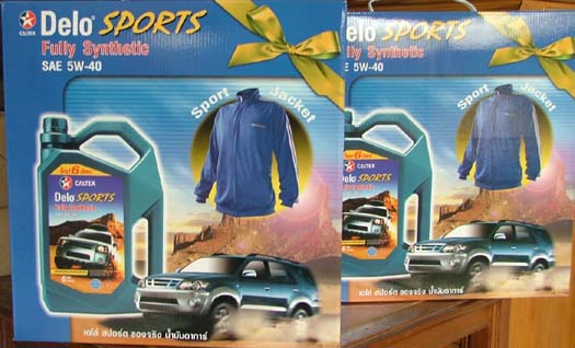 พอดีได้รับข้อเสนอดีๆจากเพื่อนคนนึง ที่ร่วมสนับสนุนกิจกรรมดีๆของ IZU มาโดยตลอด โดยเพื่อนคนนี้ได้มอบน้ำมันเครื่อง เดโล่ สปอร์ต Fully Synthetic ขนาดบรรจุ 6 ลิตร ระยะการใช้งาน 10,000-15,000 กม. มาจำหน่ายให้เพื่อนๆชาว IZU ในราคาลดพิเศษมากๆ เป็นชุดของขวัญพร้อมเสื้อแจ็คเก็ต 1 ตัว บรรจุในกล่องสวยงาม ตามแบบในรูปค่ะ ไม่มีจำหน่ายในท้องตลาดนะคะ ราคาเต็ม 1,850 บาท ขายสมาชิก ในราคา 1,100 บาท ค่ะ มีเพียง 15 ชุดเท่านั้นค่ะ โทรสั่งจอง และรับของได้ที่ 08-9079-5187 ค่ะ