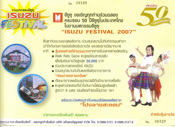 ข่าวฝากจากตรีเพชร เรียนเชิญชาว IZU ทุกท่านร่วมงานมหกรรมอีซูซุ เนื่องในงานฉลองครบรอบ 50 ปีอีซูซุในประเทศไทยค่ะ