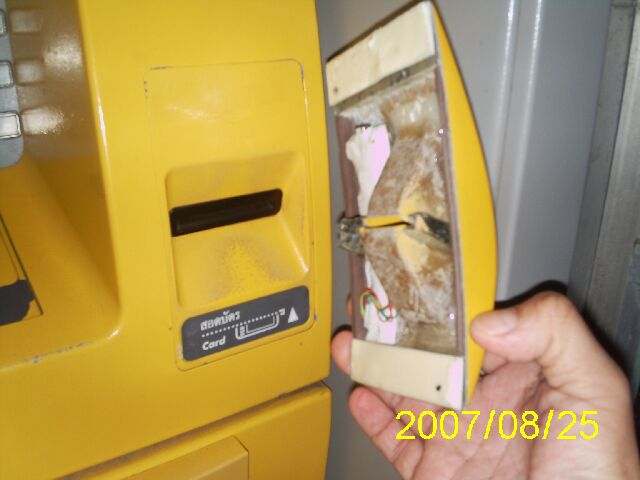 2.ปัจจุบันมีเครื่องมือทันสมัยมากสำหรับแทปข้อมูลในขณะที่เราใช้ ATM เช่นเครื่อง สกริมเมอร์ มีความสามารถดูดข้อมูลจาก ATM ของคนอื่น โดยเพียงแต่นำเครื่องเข้าใกล้กับผู้ที่กำลังทำรายการ ATM อยู่ เช่น ซ่อนเครื่องไว้ในถุงยืนอยู่ด้านหลัง เพียงเท่านี้เขาก็ได้ข้อมูล แล้วขั้นตอนต่อไปก็ไม่ยาก คือไปทำ ATM ใหม่ปลอม ซึ่งก็จะใช้ได้เช่นเดียวกับ ATM จริง