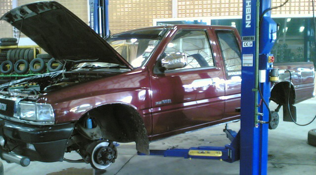 รถถึงร้านเขาก็ยกรถขึ้นลิฟแล้วเบรคดูลองหมุนล้อ ล๊อคตาย 4 ล้อเลย เลยแกะล้อดูเบรคทั้ง 4 ล้อปรกติดี ช่างเลยสรุปว่าปั๊มเบรคแน่นอน เราถามราคาละ ชุดซ่อมเบรค+น้ำมัน 730 บาทเราเลยตกลง พอถอดกระบอกเบรคมาเท่านั้นแหละ ขี้สนิมจับเต็มปากกระบอกเลย(คือช่วงต่อระหว่างกระบอกเบรคกับหม้อลมเบรคนะ)ส่วนนั้นจะเกาะเต็มเลยทำให้เวลาลูกยางปั๊มเบรคทำง่นมันเลยฝึดไม่คืนตัวนะ ขอเตือนแล้วกันนี้ดีนะที่เป็นแถวบ้านขับไม่ถึง 20 ก้าเป็นช่วงที่เรากำลังวิ่งซัก 100 ละรับรองหมุนท้ายควงสว่านขวาแน่นอน หมันเช็คละกันนะจากความห่วงใย อีซูซุ