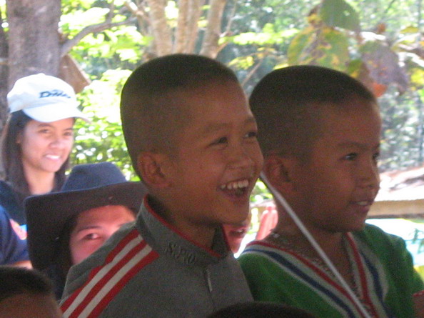12.30 น. เลี้ยงอาหารกลางวัน เด็กนักเรียน ก๋วยเตี๋ยว ข้าวแกง อาหารแห้ง ขนม ไอศกรีม เล่นเกมส์ แจกสิ่งของบริจาค คณะคาราวานรับประทานอาหารกลางวันพร้อมคณะครู เจ้าหน้าที่ อช. พุเตย และนักเรียน