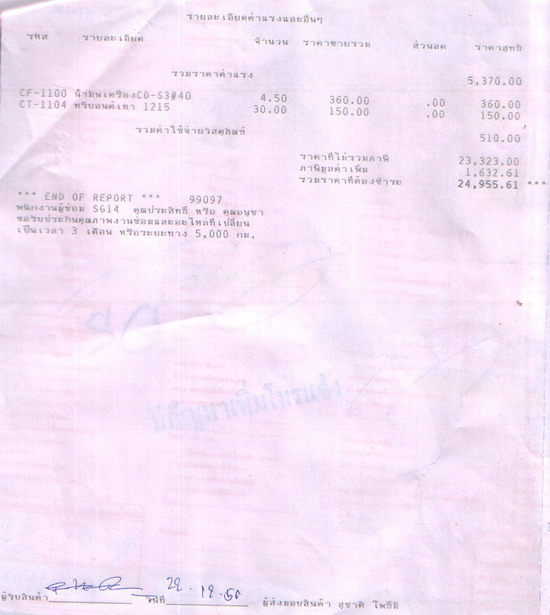 และแล้วช่างก็โทรมาบอกว่าอันนู้นอันนี้เสียเยอะเลยตีค่าซ่อมไว้คร่าวๆ 36,000 บาท หน้ามืดเลยครับพอดีนัดรับรถวันเสาร์