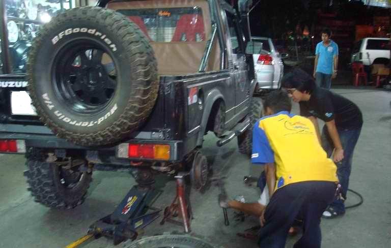 ......ช่างดำบอกว่า ไม่ต้องตกใจ ง่ายมาก อะไหล่ไม่มีนะตอนนี้อะ .............กรรม แก้ไขหน้างานก่อน ถอดล้อ ถอดจาน เอาผ้าเบรคเจ้ากรรมออก แล้วใช้ คีมล๊อก บีบสายเบรคเอาไว้ แค่นี้ ก้อขับไปไหนต่อไหนได้แล้ว อิอิๆ มีเบรคแค่ สามล้อ ช่างดำแนะนำ ฮ่าๆ