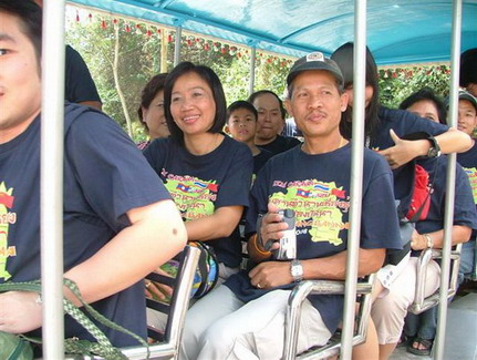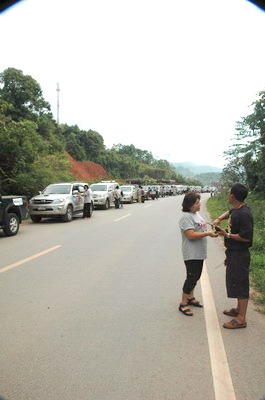 .................... ทริปสืบสานตำนานเชียงรุ่งทำให้เราได้สัมผัสบรรยากาศความเป็นไทย ในสมัยบรรพกาล ที่เชื่อกันว่าคือถิ่นฐานต้นกำเนิดบรรพบุรุษของชาวไทยในปัจจุบันค่ะ และยังได้เห็นขนบธรรมเนียม ประเพณีต่างๆ ที่คล้ายคลึงกับประเพณีไทย ภาษาที่ใช้ก็คล้ายคลึงกันในบางคำ อาหารต่างๆก็ไม่แตกต่างจากอาหารทางภาคเหนือของเราค่ะ ............การเดินทางต้องผ่านเข้าทางเชียงของของฝั่งไทย อาศัยแพยนต์บรรทุกรถยนต์ และชาว IZU ไปสู่ฝั่งห้วยทราย ของ สปป.ลาว และเดินทางต่อไปยังชายแดนบ่อเต็น เข้าสู่ ด่านบ่อหาน ของ จังหวัดยูนนาน ในเขตจีนตอนใต้ ค่ะ เส้นทางของคาราวานต้องลัดเลาะไหล่เขาเกินกว่าร้อยลูก กับหลายพันโค้ง กว่าจะลงสู่เส้นทาง ไฮเวย์ R3A ที่ยังไม่เสร็จสมบูรณ์นัก และยังไม่เก็บค่าผ่านทาง เส้นทางนี้สวยงาม และทำให้การดินทางไปสู่จีนได้สะดวกยิ่งขึ้น เร็วกว่าทางเดิมถึง 6 ชม. ทีเดียวค่ะ และยังมีอุโมงค์มากมายเกิน 50 อุโมงค์ให้รถวิ่งลอดผ่านอย่างสะดวก ไม่ต้องขึ้นเขา ตลอดเส้นทางสู่จังหวัดคุนหมิงค่ะ...............