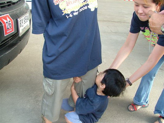 1. ภาพปริศนานี้ ใครคือเจ้าของขา ที่น้องหว่าหวาเกาะหนึบคะ ?